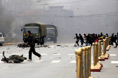Kreuzungen in Brand gesetzt. (…) Auf dem Chang’an-Boulevard wurde der Motor