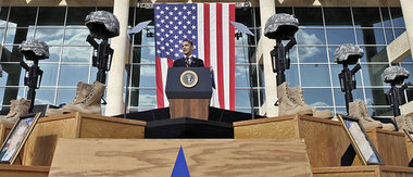 kommen tot zurück (Präsident Barack Obama am 10.11.2009 im Fort Hood/Texas)
