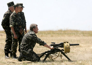 Viktor Juschtschenko (am MG) gegen Rußland unterstützen