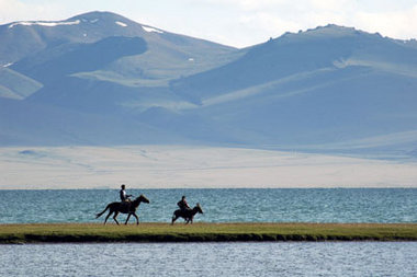 Das bergige Kirgisien ist reich an Wasser. Gebirgssee Son-Kul,