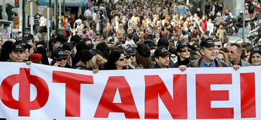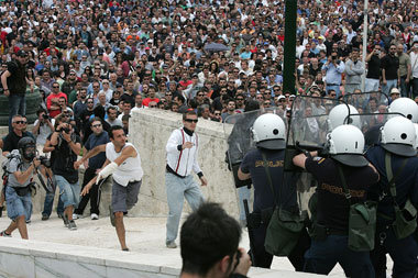 Siehe dazu (mit Video): Tote bei Protesten in Athen - Fanal in den Flammen (Spiegel Online)