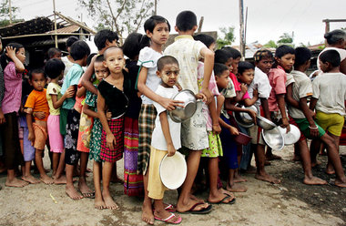 an einer Hilfsstation nahe der myanmarischen Hauptstadt Yangon (12.5.2008)
